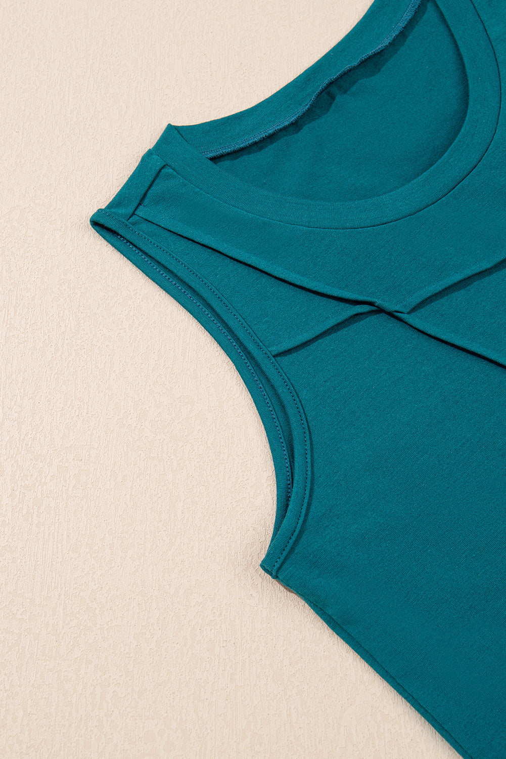 Camiseta sin mangas de cuello redondo con detalle de costuras en color liso azul zafiro