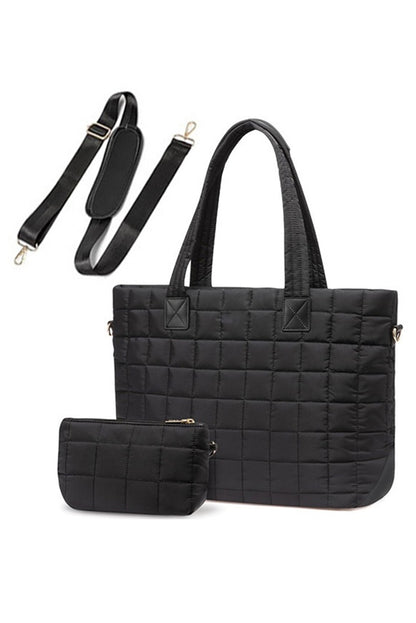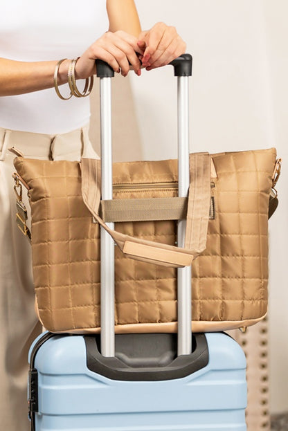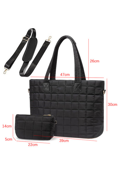 Conjunto de 2 bolsos tote grandes y clutch con patchwork acolchado en color camello