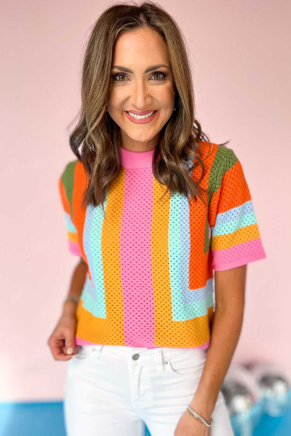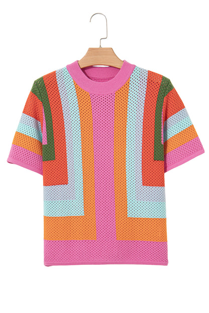 Camiseta informal de punto con ojales y bloques de color naranja