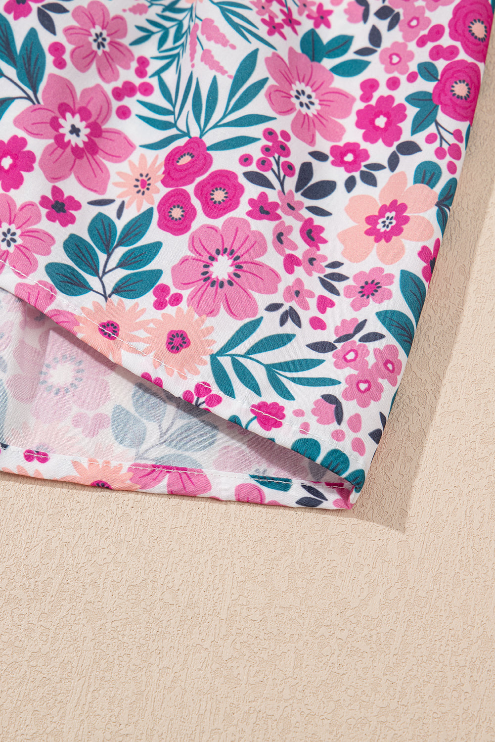 Vestido holgado de manga corta con medio botón y cuello con estampado floral rosa