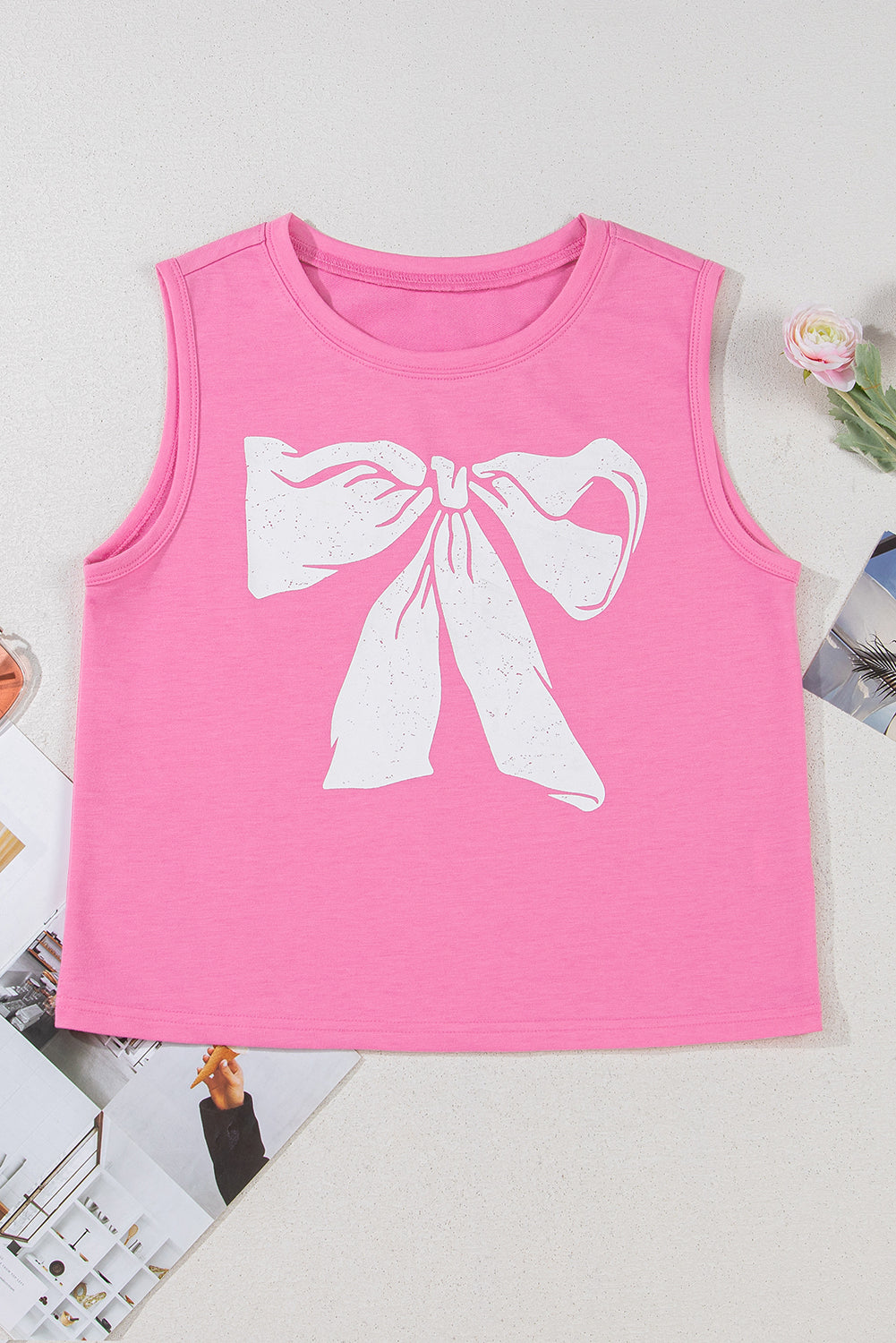 T-shirt décontracté sans manches avec nœud rose Sachet