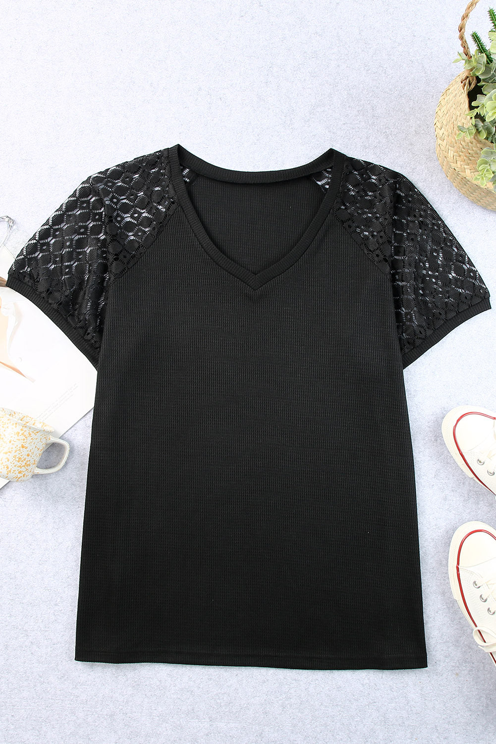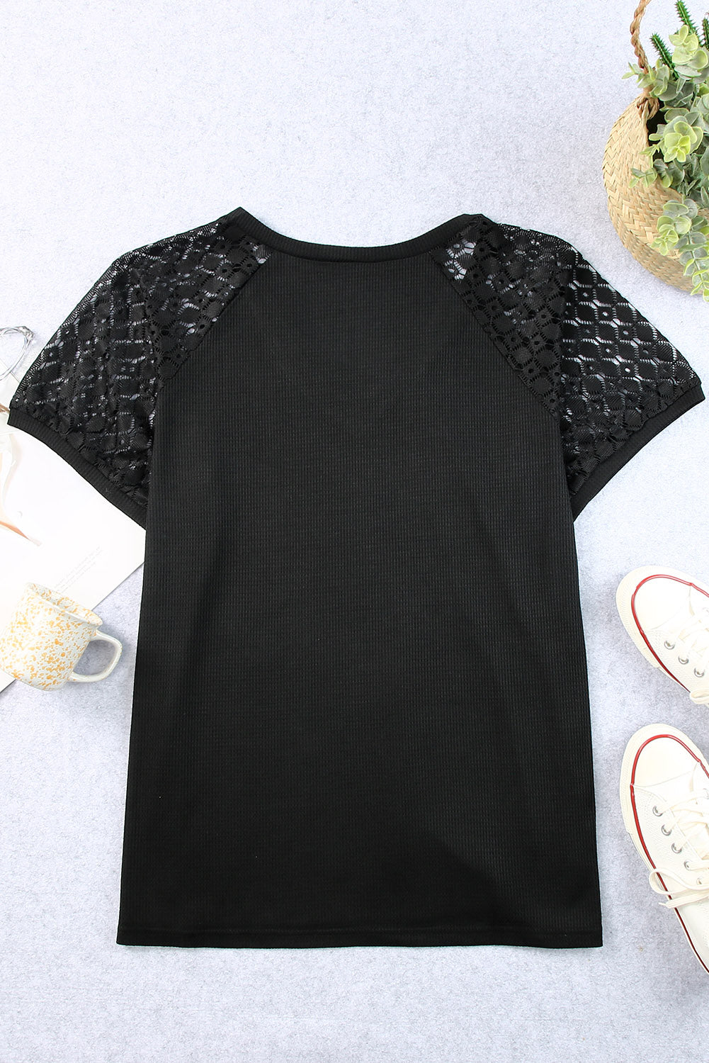 - This trendy black tee updates a classic silhouette with a modern twist, perfect from day to night.