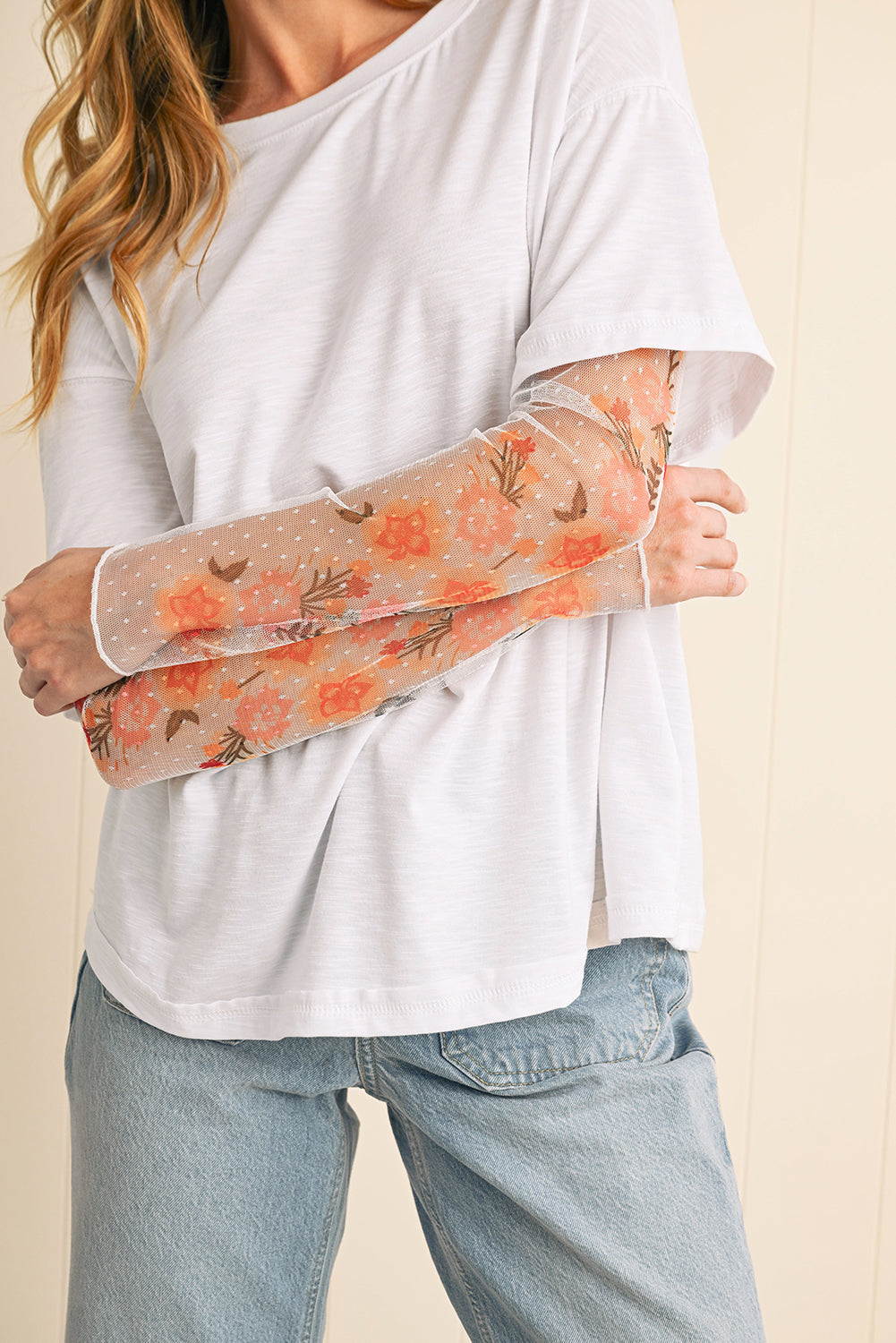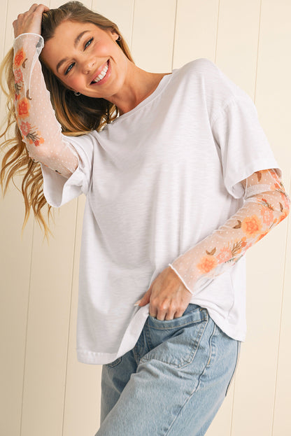Black Floral Mesh Sleeve Fake Two-Piece Top