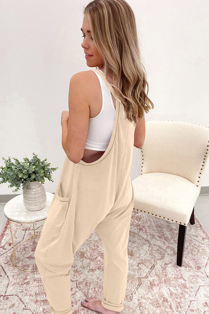 - Black harem jumpsuit with a loose, relaxed fit for casual outings.