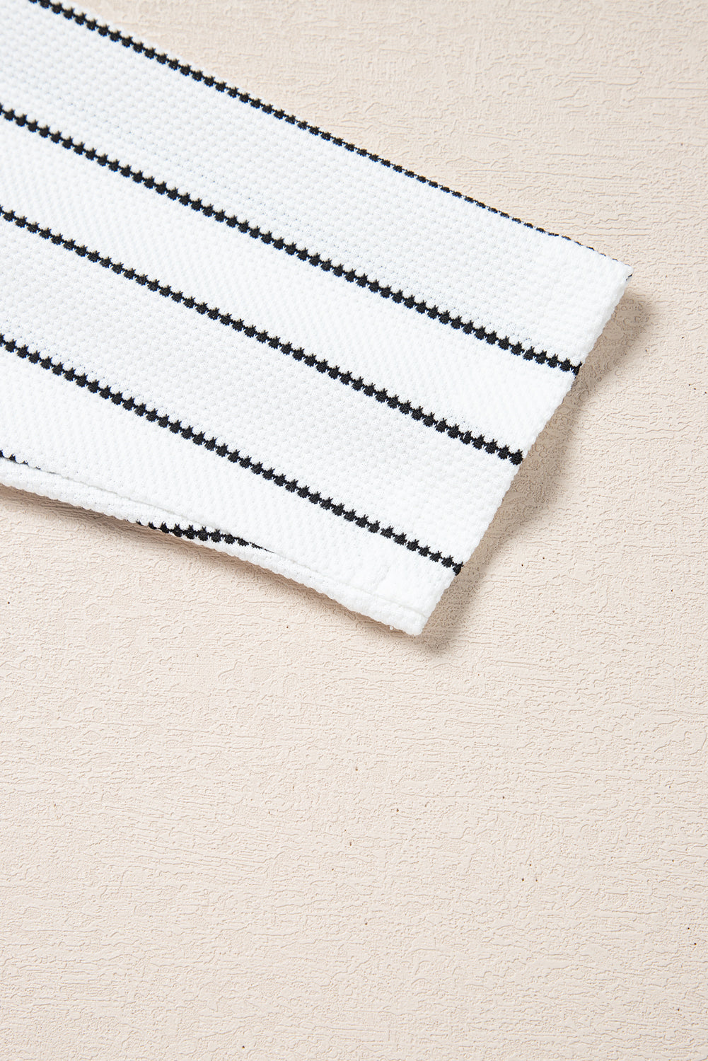 Black Stripe V Neck Long Sleeve Waffle Knit Top