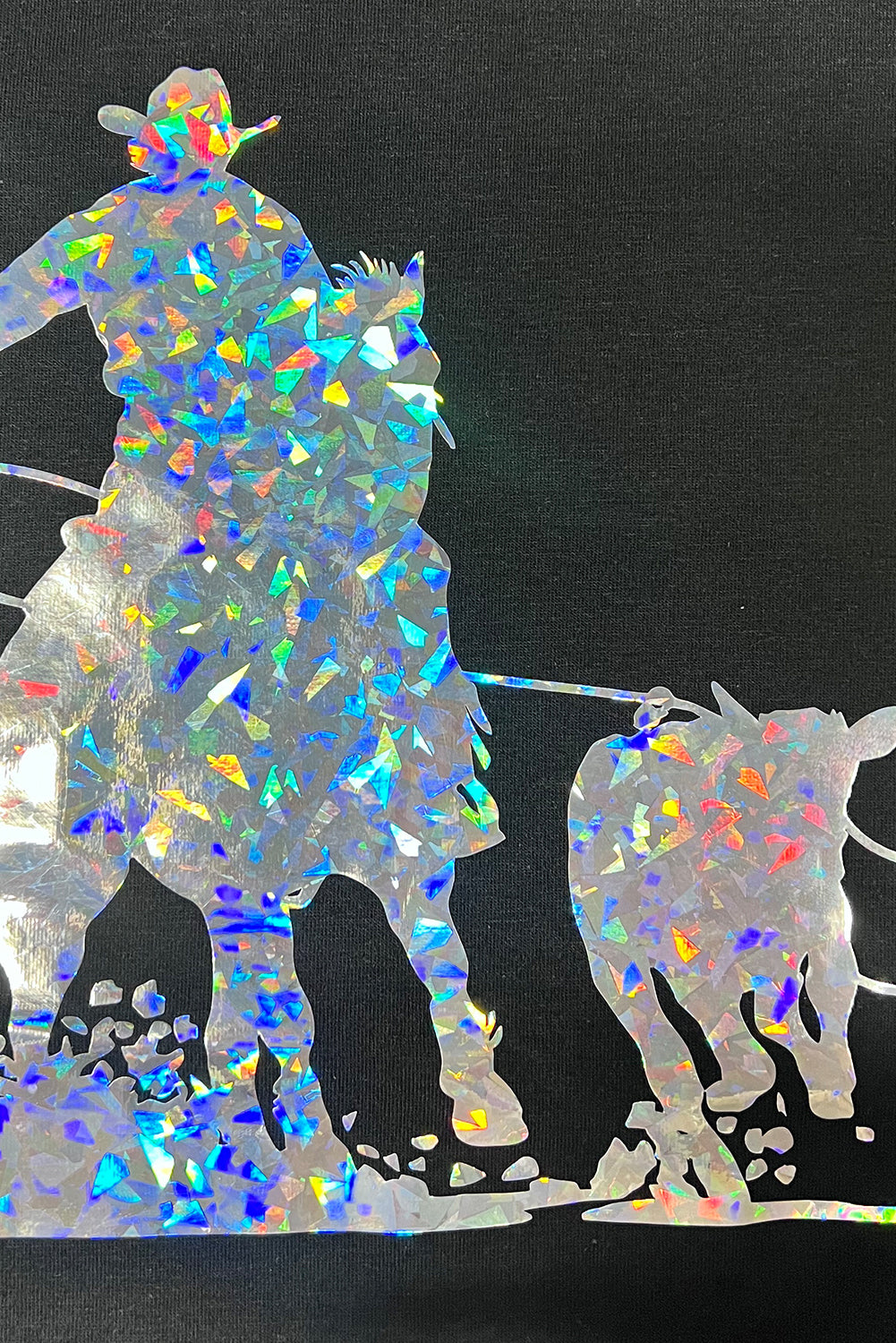 - A bold cowboy graphic adds edge, while the black color lends sophistication.