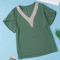 Blackish Green Plus Size Contrast V Neck Draped Sleeve Blouse