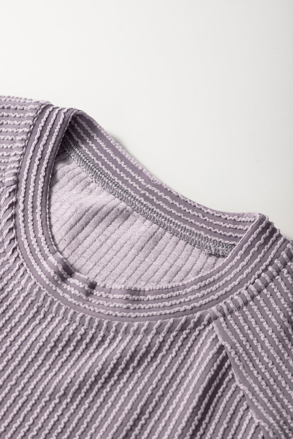 Blue Solid Corded Short Sleeve T Shirt and Wide Leg Pants Set