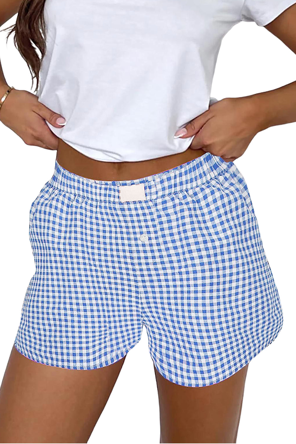 - Designed with a stylish button closure, these shorts showcase a timeless gingham print for a playful yet sophisticated touch.