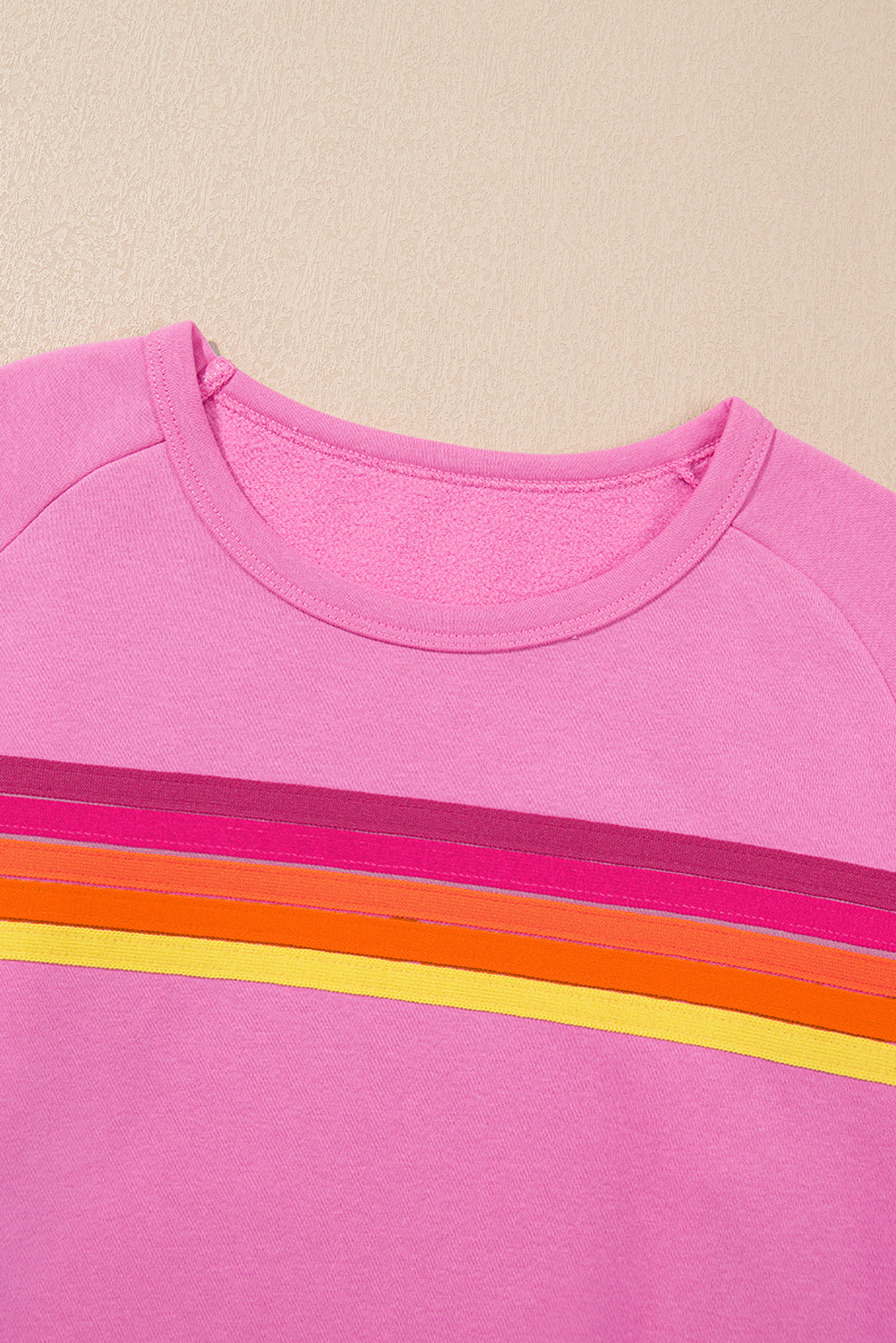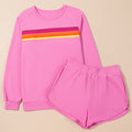 Bonbon Colorful Striped Long Sleeve Pullover and Shorts Set