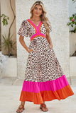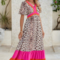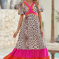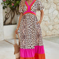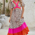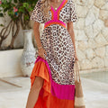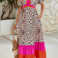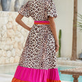 Bright Pink Leopard Print Colorblock Pop of Color Neckline Dress