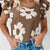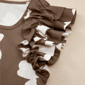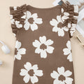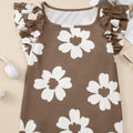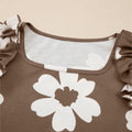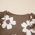 Brown Floral Ruffle Shoulder Square Neck Blouse