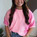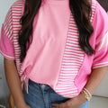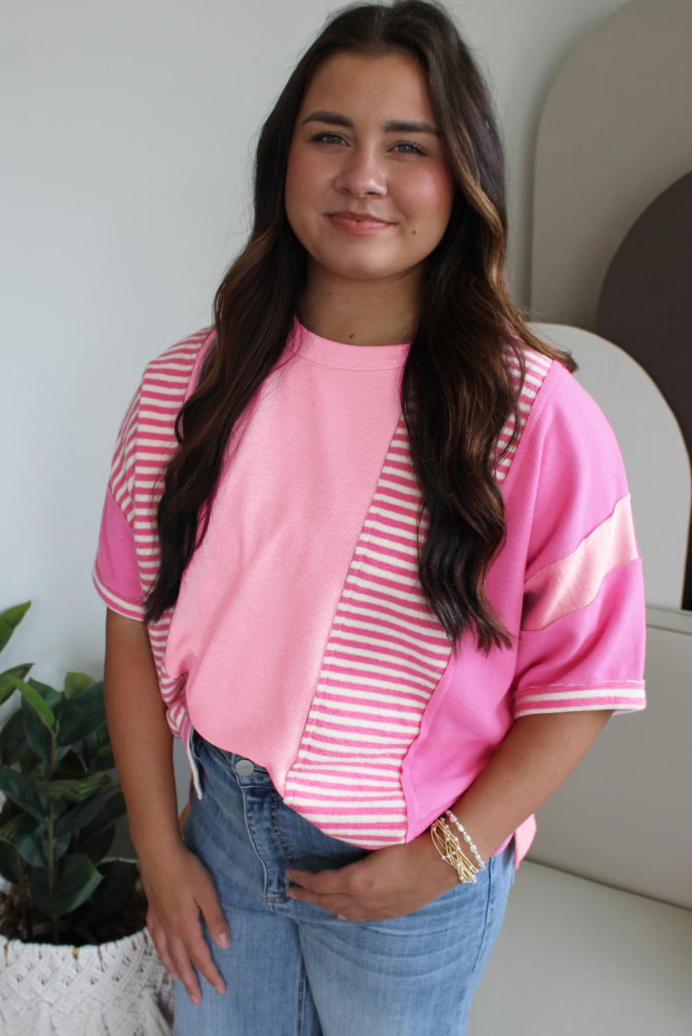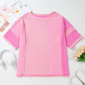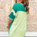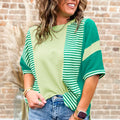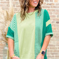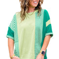 Green Stripe Waffle Patchwork Plus Size T-Shirt