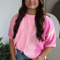- This unique top features a mix of fabrics for a stylish and comfortable fit.