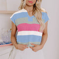 Light Blue Colorblock Notch V Neck Knit T Shirt