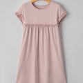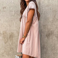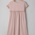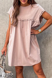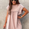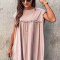 Oatmeal Frilled Trim Crewneck Loose Fit Mini Dress