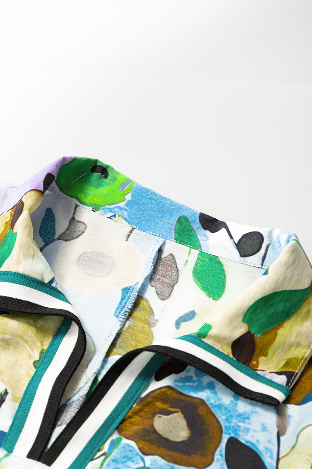 Peacock Blue Floral Print Boho Pop of Color Neckline Blouse
