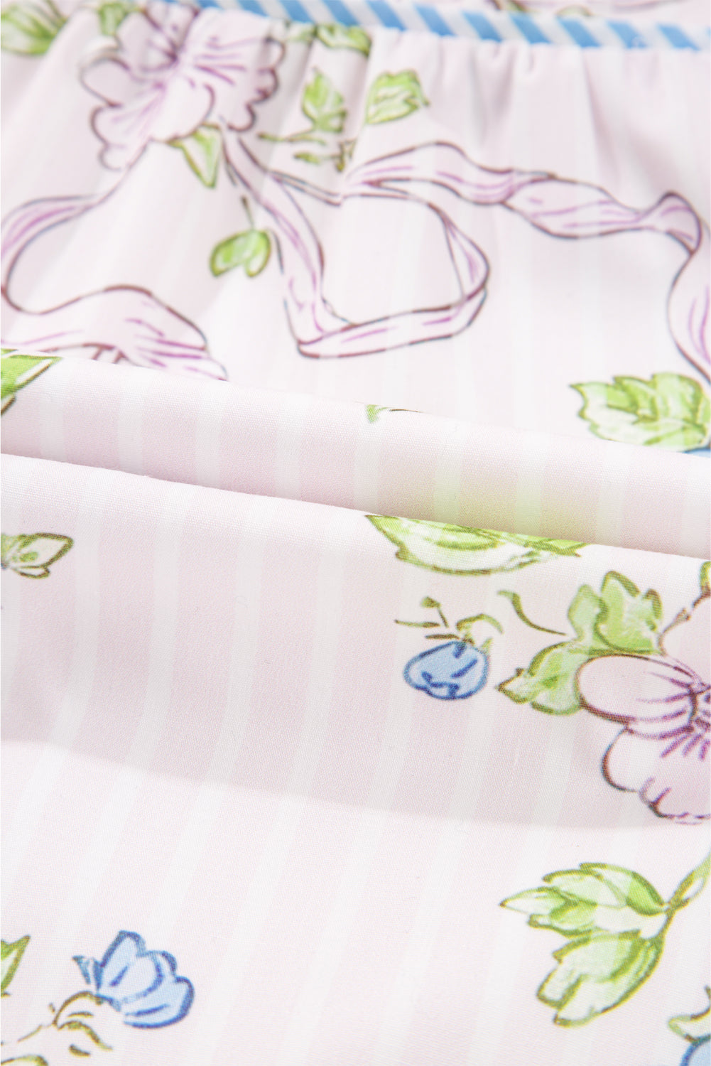 Pink Floral Striped Print Contrast Trim Tie Split Neck Mini Dress