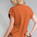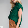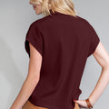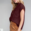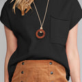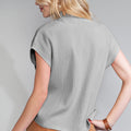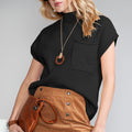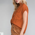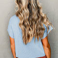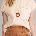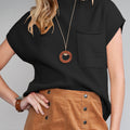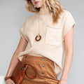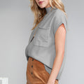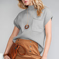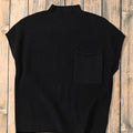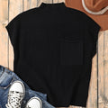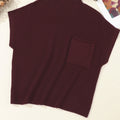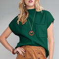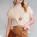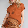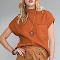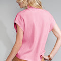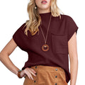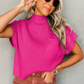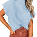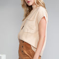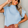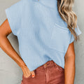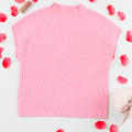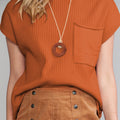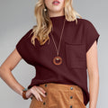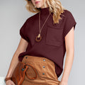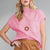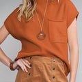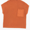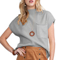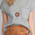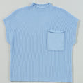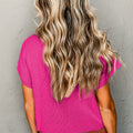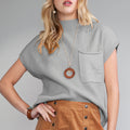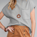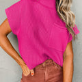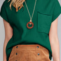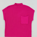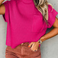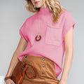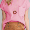 Pink Patch Pocket Ribbed Knit Short Sleeve Sweater