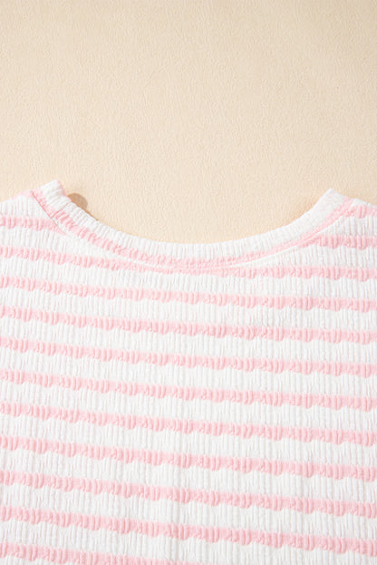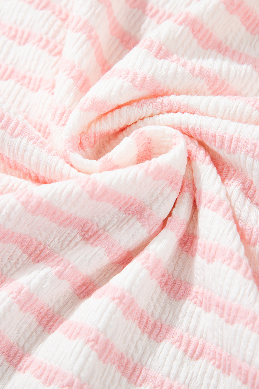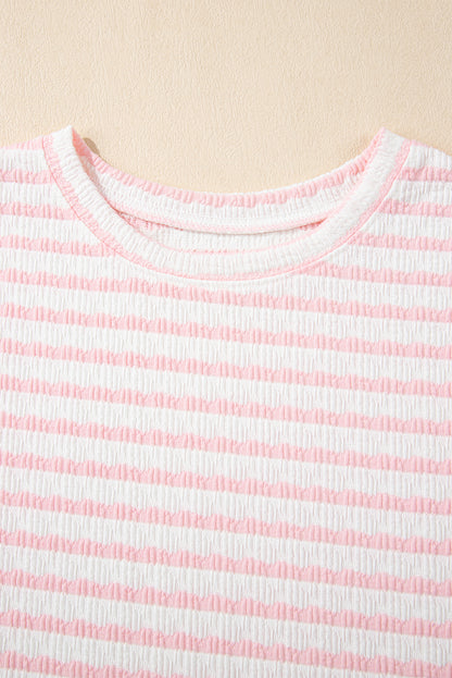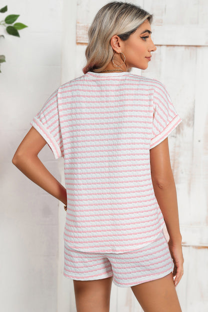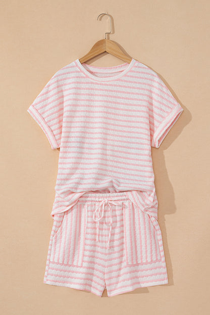 Pink Striped Print Short Sleeve Top and Pocket Shorts Set