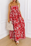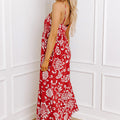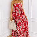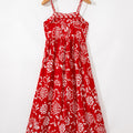 Red Floral Print Spaghetti Strap Empire Waist Maxi Dress