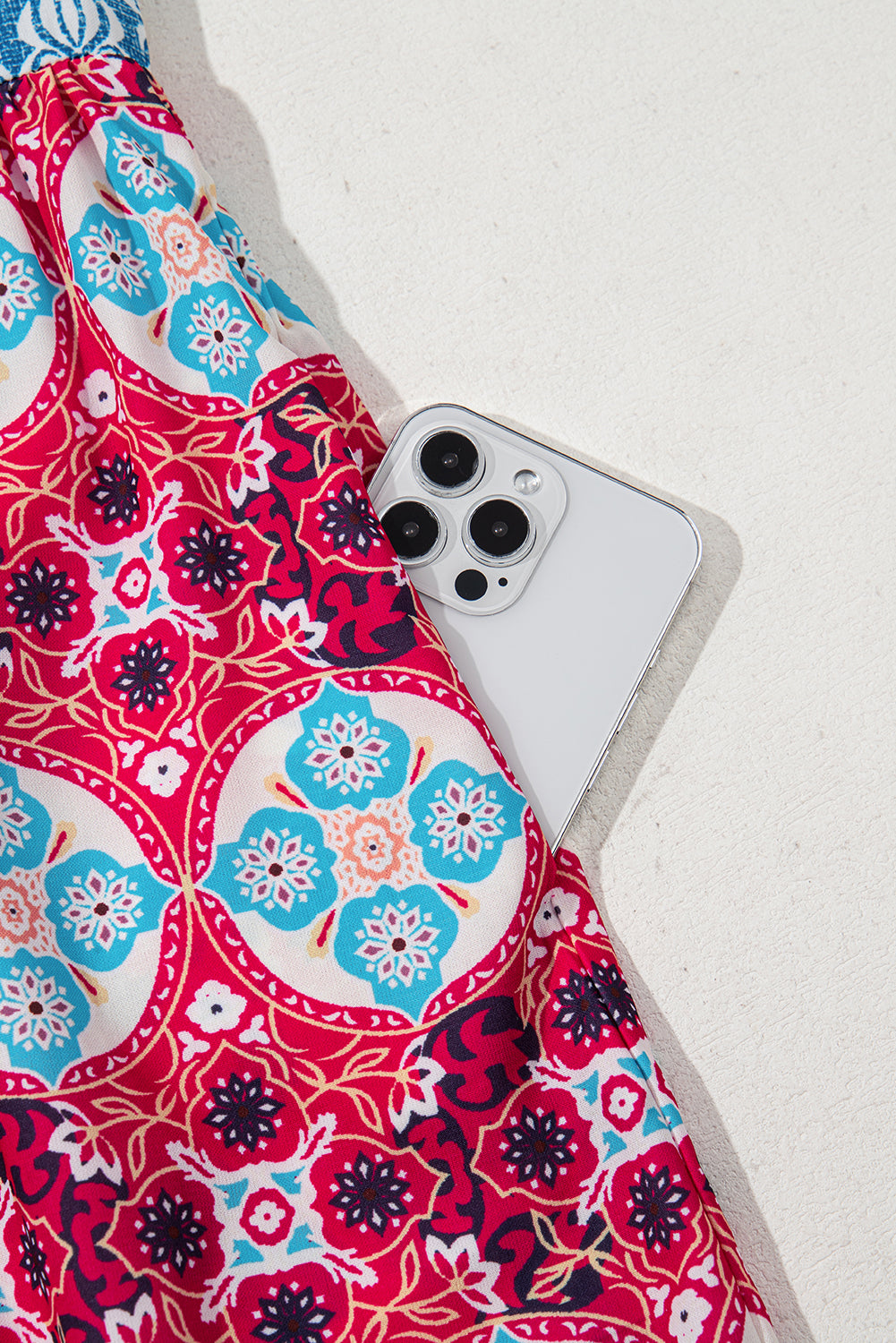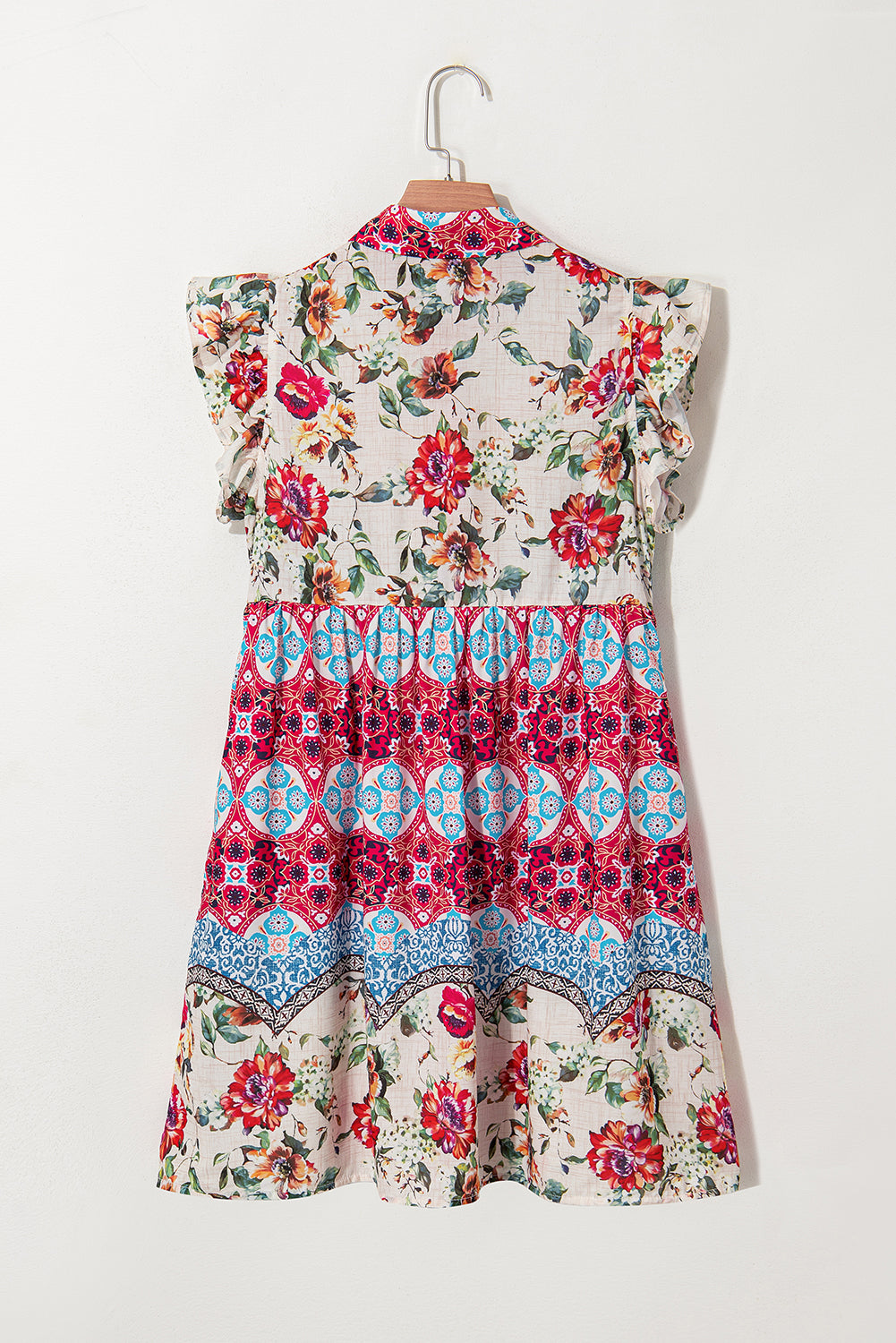 Rose Floral Ethnic Print Ruffle Mini Dress