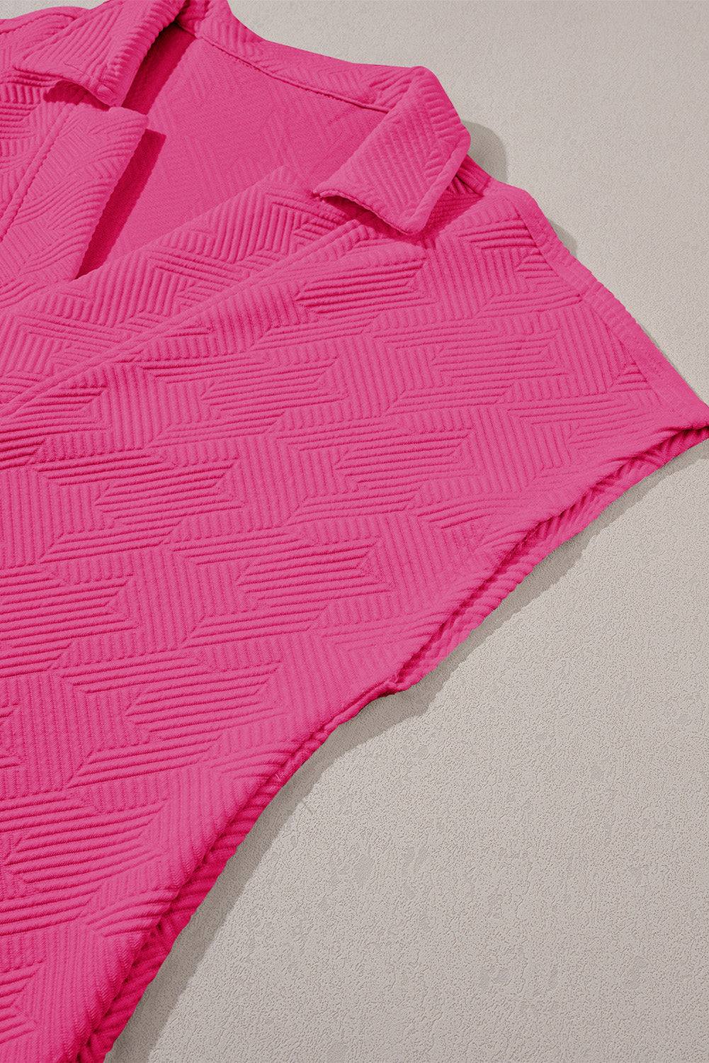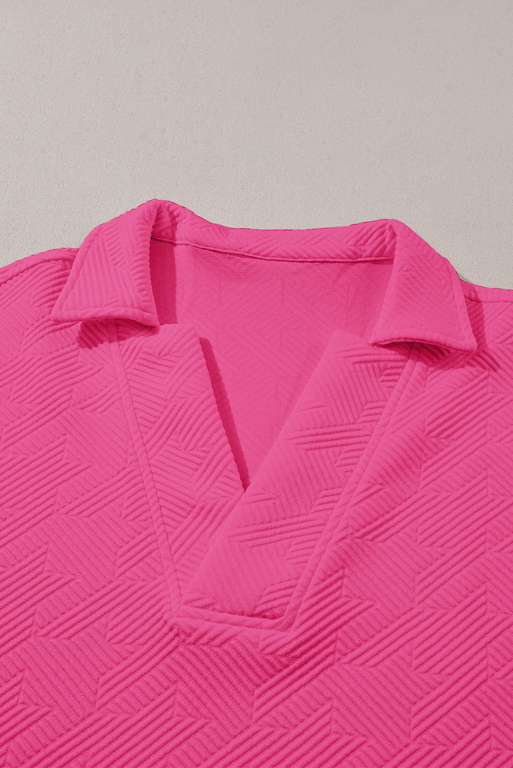 Rose Red Textured Collared V Neck Slit Hem T Shirt