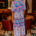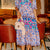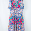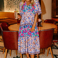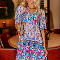Sky Blue Mixed Floral Print Tie Split Neck Short Sleeve Dress