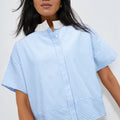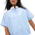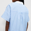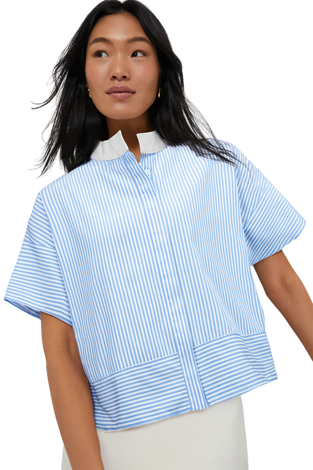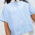 Sky Blue Striped Contrast Neckline Buttoned Shirt
