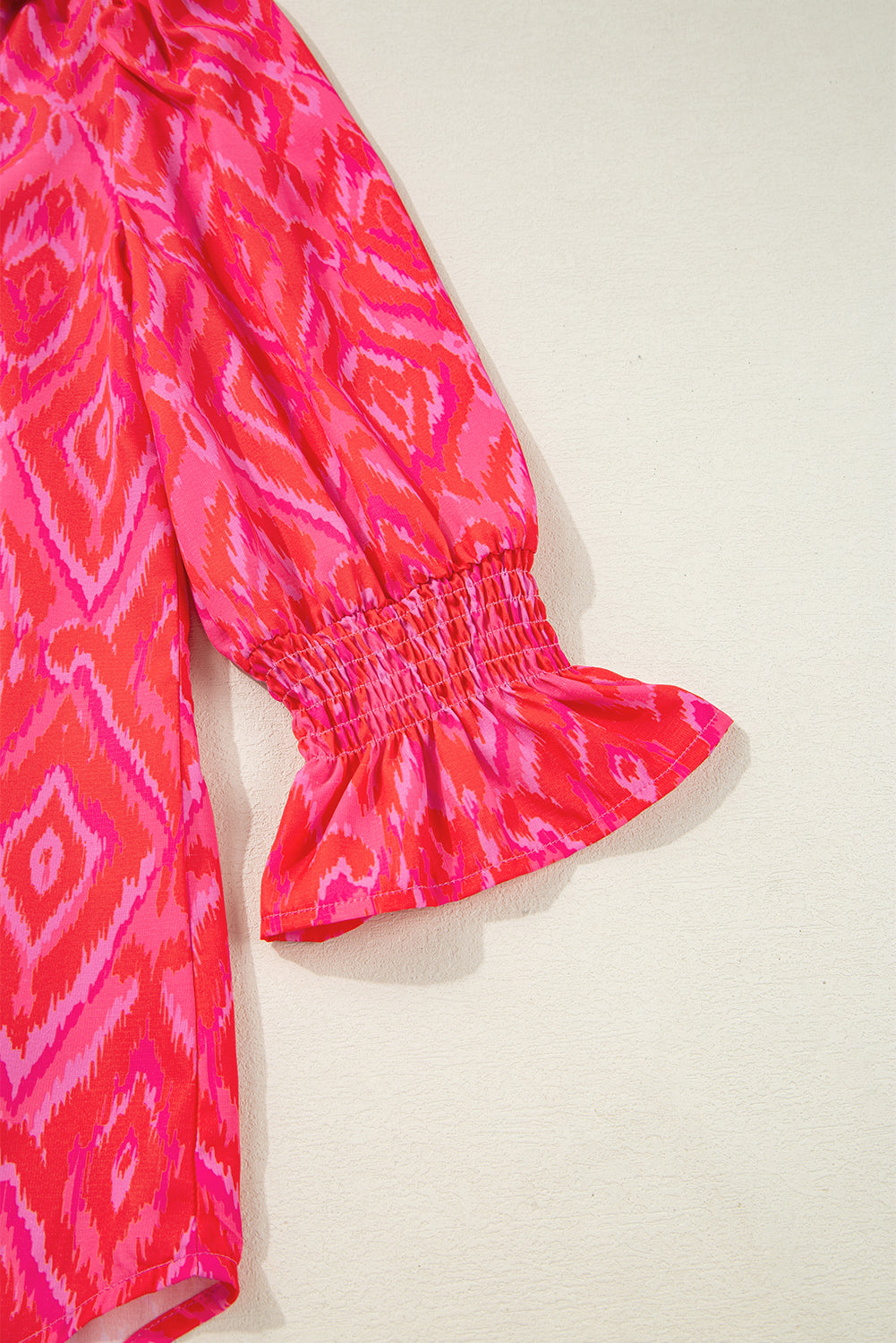 Strawberry Pink Abstract Print Puff Sleeve Shirt