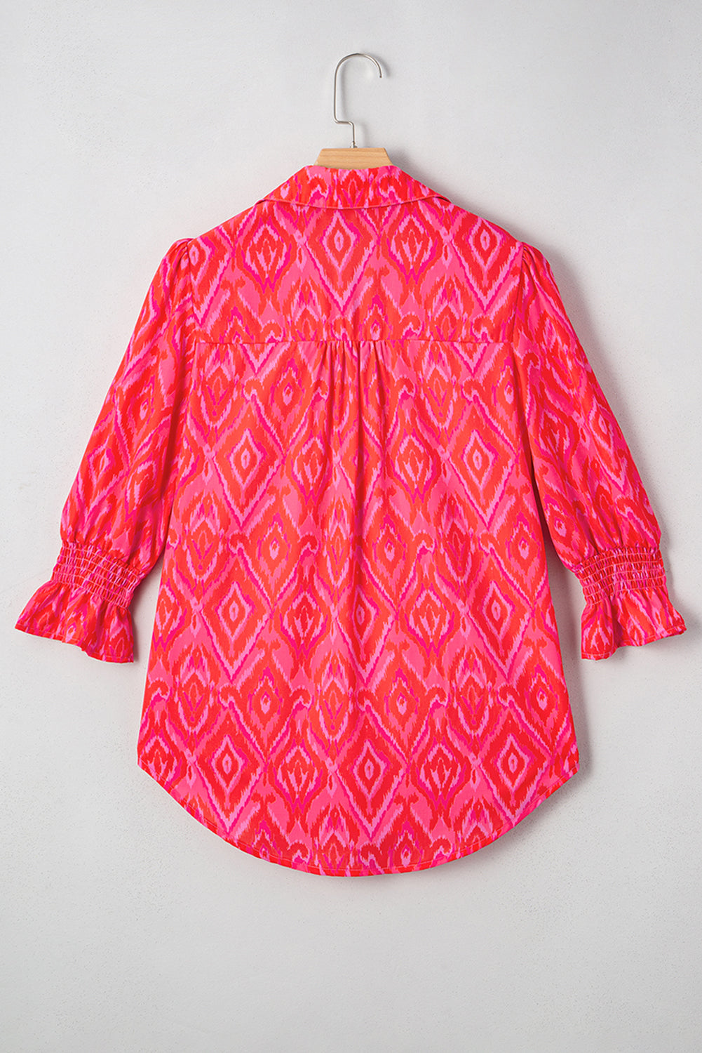 - Unleash your inner bohemian spirit with this puff sleeve shirt, featuring a mesmerizing abstract pattern that adds an artistic touch to your outfit.