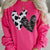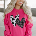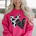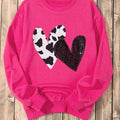 - The sweatshirt is adorned with a sequin and cow print heart patch, which adds a touch of glamour and sparkle to the sweatshirt, making it stand out.