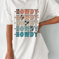 White HOWDY Stars Print Crew Neck Loose Fit T Shirt